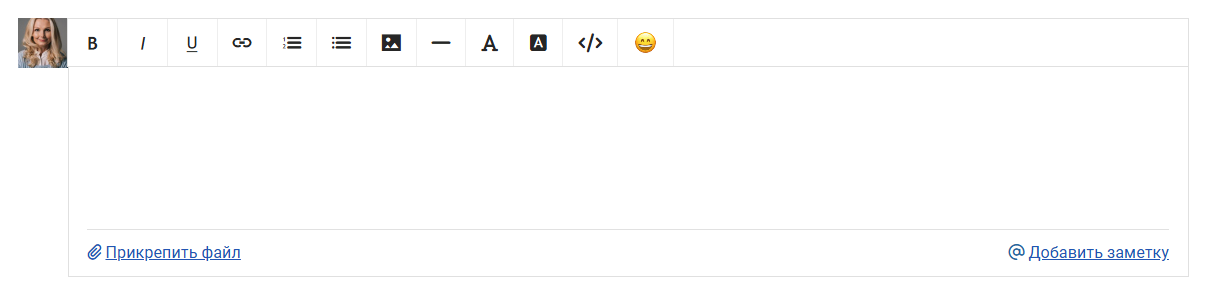б. В чатах (сообщениях из Facebook, ВКонтакте, Telegram, Viber, Chatra, Slack и других каналов синхронного общения) при переключении в режим написания заметки редактора не видно, но на самом деле он там есть. Сделано это из-за того, что в чатах клиенту нельзя отправлять отформатированный текст, поэтому в заметках появляющийся редактор бы каждый раз сдвигал поле. Вы можете: