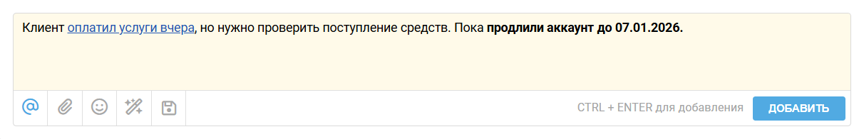 Раньше функциональность заметок была скромной: пишете обычный текст и, возможно, настраиваете правило, которое извещает коллег о том, что в обращении добавлена заметка.