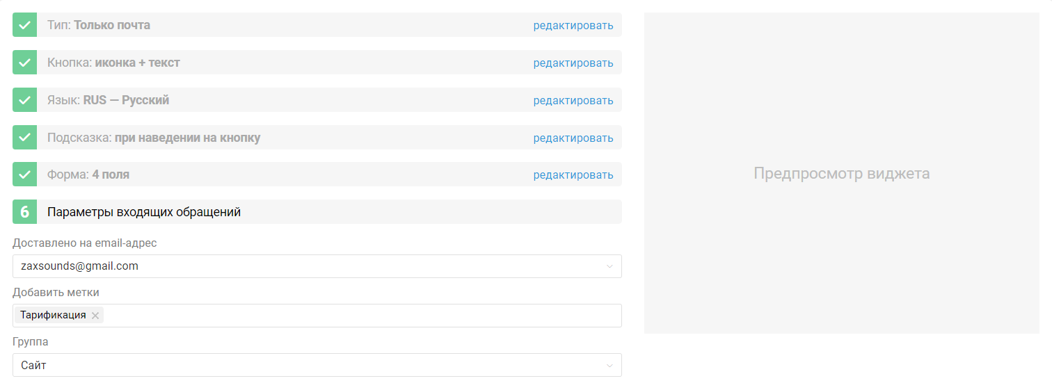 Благодаря меткам, вы можете настроить выполнение нужных действий для обращений, поступающих с определённых виджетов.