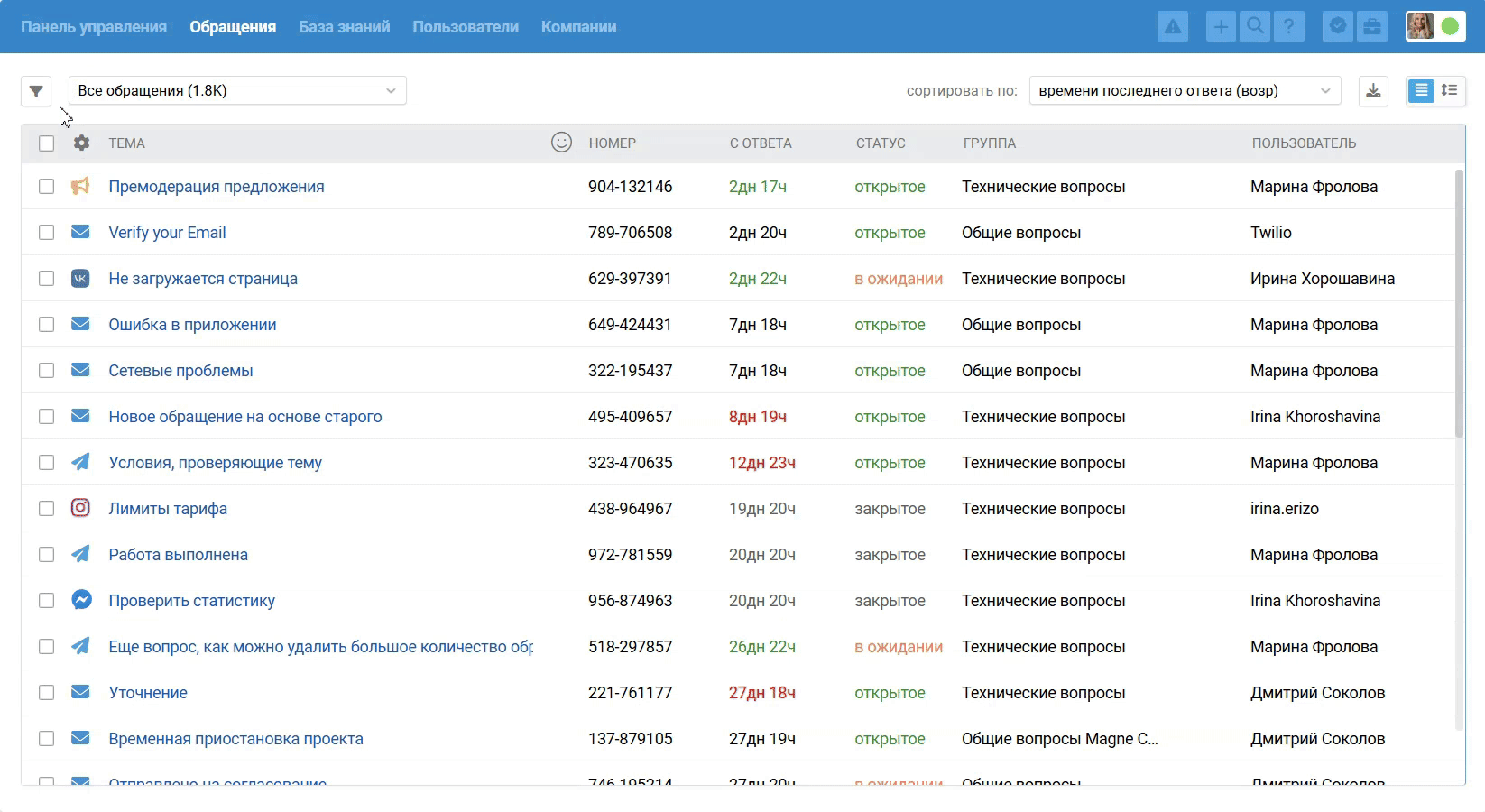 Если у вас есть потребность в дополнительном статусе, метки помогают решить эту задачу. К примеру, можно создать метку «в работе», чтобы собрать воедино все обращения, на обработку которых вам потребуется какое-то время. Уже на основе метки можно создать отдельный фильтр в списке обращений.