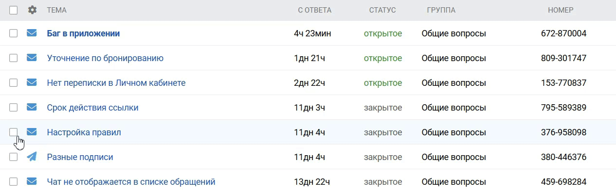 По сути, такой вариант мало чем отличается от отдельного статуса. Предположим, что у вас есть статус «в работе». Чтобы просматривать обращения с таким статусом, нужно создать соответствующий фильтр в списке обращений. То есть без дополнительного фильтра не обойтись.