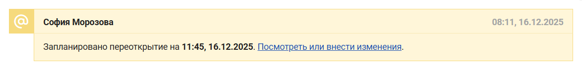 - добавим заметку, если при планировании переоткрытия сотрудник заполнил заметку (с упоминанием или без).