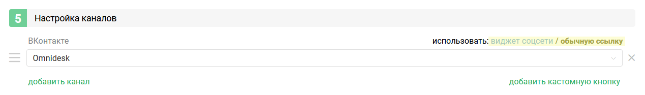 При добавлении канала ВКонтакте есть возможность выбрать обычную ссылку или виджет соцсети:
